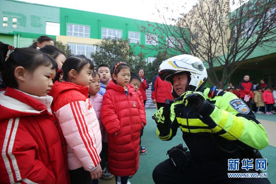 11月30日,在位于濟(jì)南市的山東省實(shí)驗(yàn)幼兒園南校區(qū),交警向孩子們展示執(zhí)法記錄儀。新華社發(fā)(郝群英 攝)