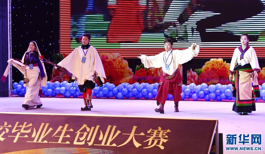 演員在西藏那曲第二屆高校畢業(yè)生創(chuàng)業(yè)大賽決賽現場表演(11月30日攝)。新華社記者 張汝鋒 攝