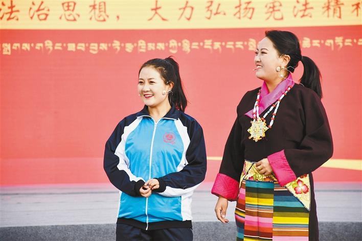 舞臺上,西藏自治區(qū)各級普法部門別出心裁地準備了小品、相聲、歌曲、舞蹈等老百姓喜聞樂見的節(jié)目,為現(xiàn)場群眾送上了一臺豐盛的法治文化大餐。