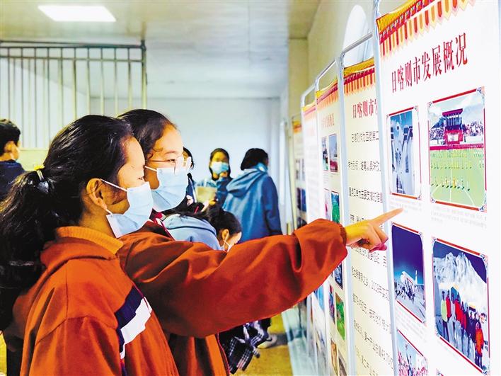 宣講組一行通過圖片和文字資料,向內(nèi)地西藏班的學(xué)子們展示了西藏翻天覆地的變化及各項事業(yè)取得的成就。圖為內(nèi)地西藏班學(xué)生觀看圖片和文字展。