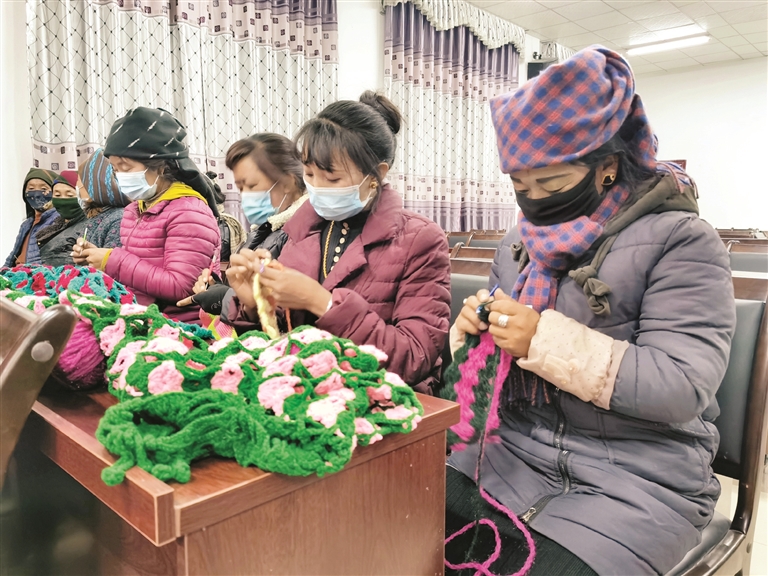 近日,在邦堆鄉(xiāng)克日村,村婦聯(lián)組織20余名婦女集中開展了“巾幗夜校領(lǐng)學(xué)”活動,學(xué)員們現(xiàn)場進(jìn)行手工編織。今年57歲的歐珠措姆2019年開始學(xué)習(xí)手工編織,現(xiàn)在已經(jīng)能夠編織成品進(jìn)行銷售了。據(jù)了解,克日村婦女手工編織成員經(jīng)過兩年培訓(xùn),目前均已能夠生產(chǎn)出單個產(chǎn)品。通過售賣產(chǎn)品,農(nóng)閑時期平均每人至少能增加800元的收入。
