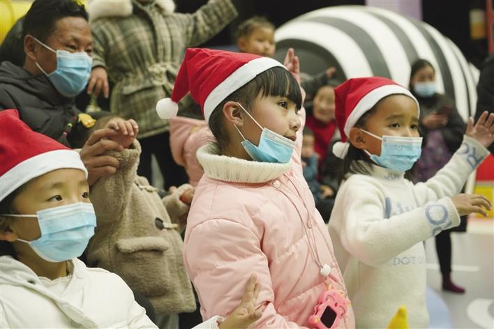 旋轉(zhuǎn)木馬、淘氣堡、滑梯……7歲的丹增達色玩得小臉紅撲撲,她告訴記者,這是她第一次來第三極歡樂世界,能和這么多小伙伴一起玩耍,真得很開心。“今天有這么多叔叔阿姨們陪我們一起唱歌、跳舞,還送了我們小禮物,我很喜歡?!钡ぴ鲞_色笑著說。