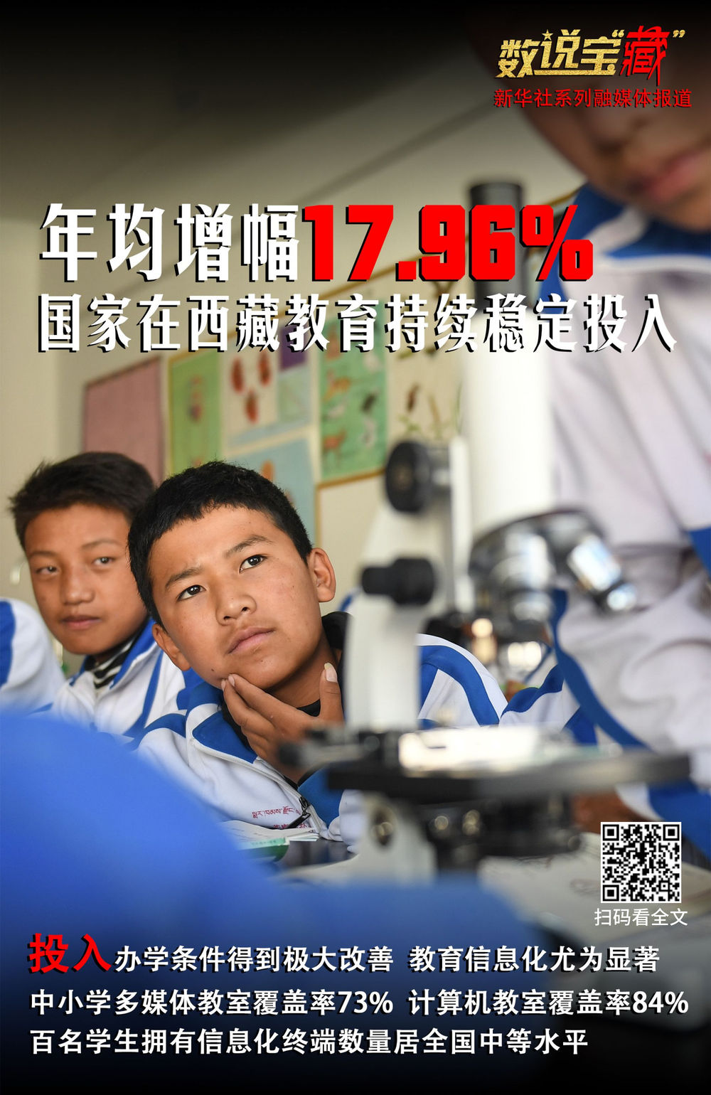 國家財政性教育經費2019年在西藏投入達283.76億元,比2010年翻了兩番,10年來已累計投入1656.89億元,年均增幅17.96%。