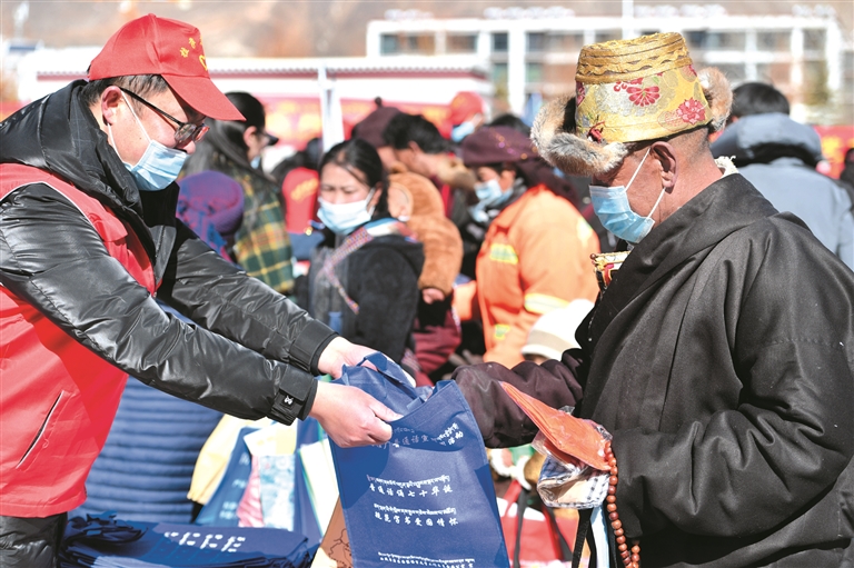 隨著春節(jié)、藏歷新年腳步越來(lái)越近,熱熱鬧鬧的年味越來(lái)越濃。2月1日,由拉薩市委宣傳部牽頭,市文聯(lián)、市教育局、市司法局、市衛(wèi)健委等16家單位走進(jìn)墨竹工卡縣新時(shí)代文明實(shí)踐中心,開(kāi)展文化科技衛(wèi)生法律愛(ài)國(guó)愛(ài)教服務(wù)“五下鄉(xiāng)”活動(dòng),為當(dāng)?shù)厝罕娝蜕闲履甓Y物。