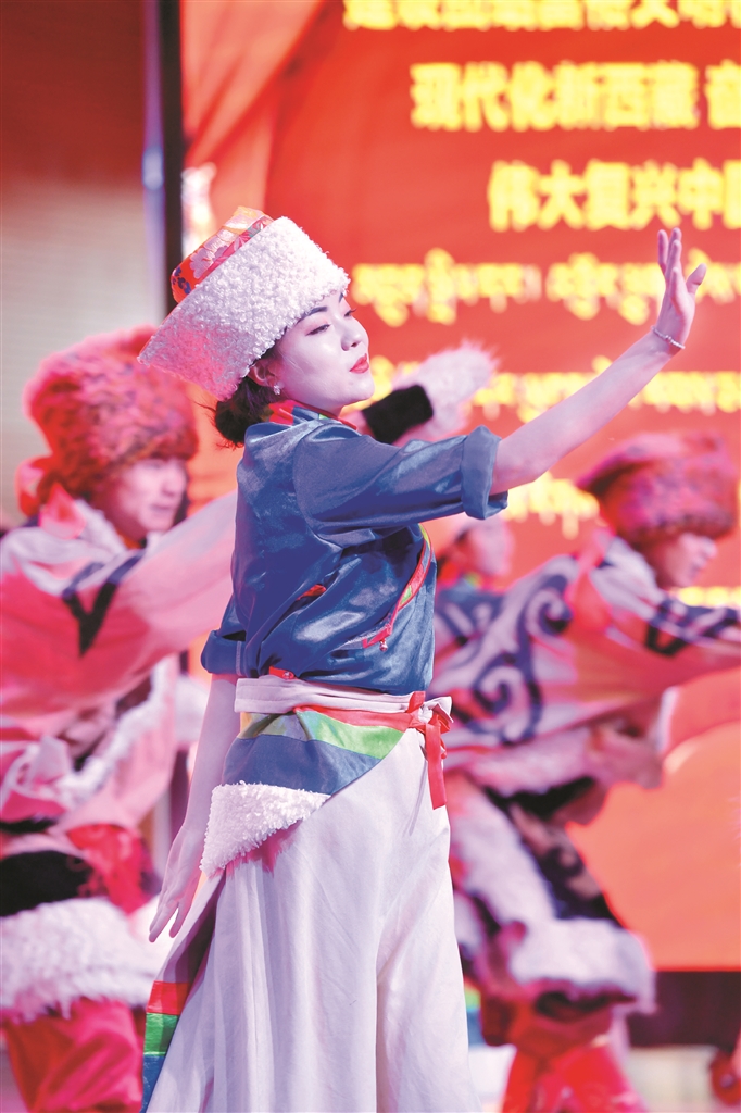 活動(dòng)現(xiàn)場(chǎng),演員們?yōu)榇蠹規(guī)?lái)了精彩的歌舞表演。圖片由拉薩融媒視覺(jué)組攝