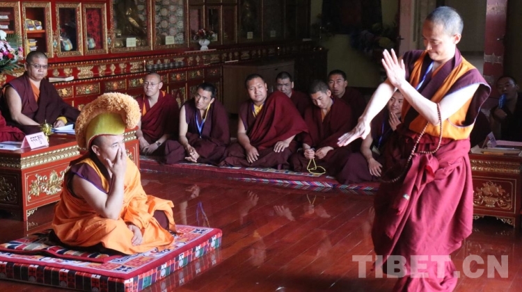 圖為格魯派辯經考試現(xiàn)場