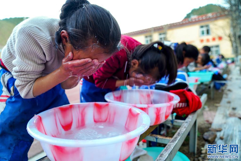 4月30日,在西藏昌都市類烏齊縣桑多鎮(zhèn)第二小學,學生們用熱水洗漱。這套熱水設施由李純民發(fā)起的“齊興”助學獎勵基金捐助。新華社記者 黃臻 攝