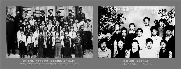 1951年3月,西藏建立第一所小學(xué)——昌都小學(xué)。這是該校開學(xué)合影。