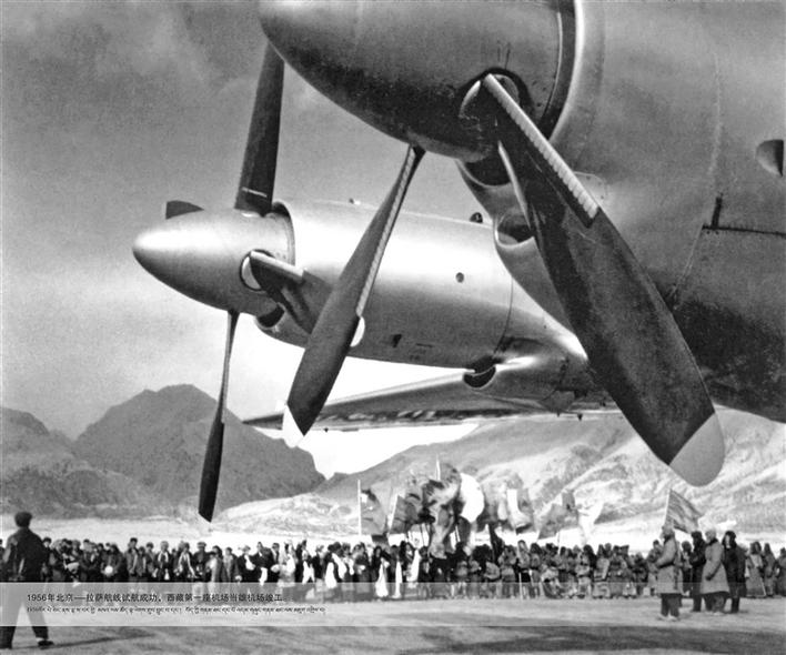 1956年,北京-拉薩航線試航成功,西藏第一座機(jī)場——當(dāng)雄機(jī)場竣工。
