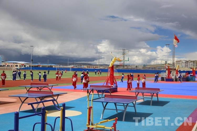 圖為西藏自治區(qū)那曲市色尼區(qū)杭嘉中學(xué)的學(xué)生們正在操場上進行各種體育活動 攝影:吳建穎
