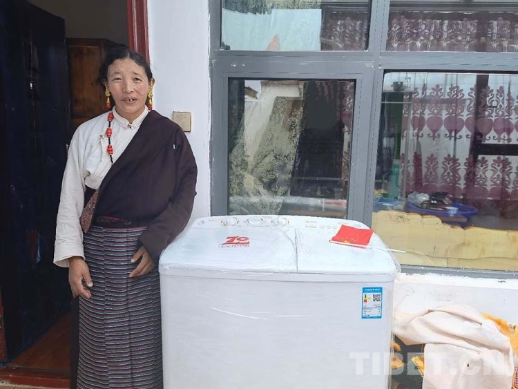 圖為西藏自治區(qū)那曲市色尼區(qū)羅瑪鎮(zhèn)凱瑪村村民美美家收到的中央代表團贈送的禮物——大功率洗衣機 攝影:吳建穎