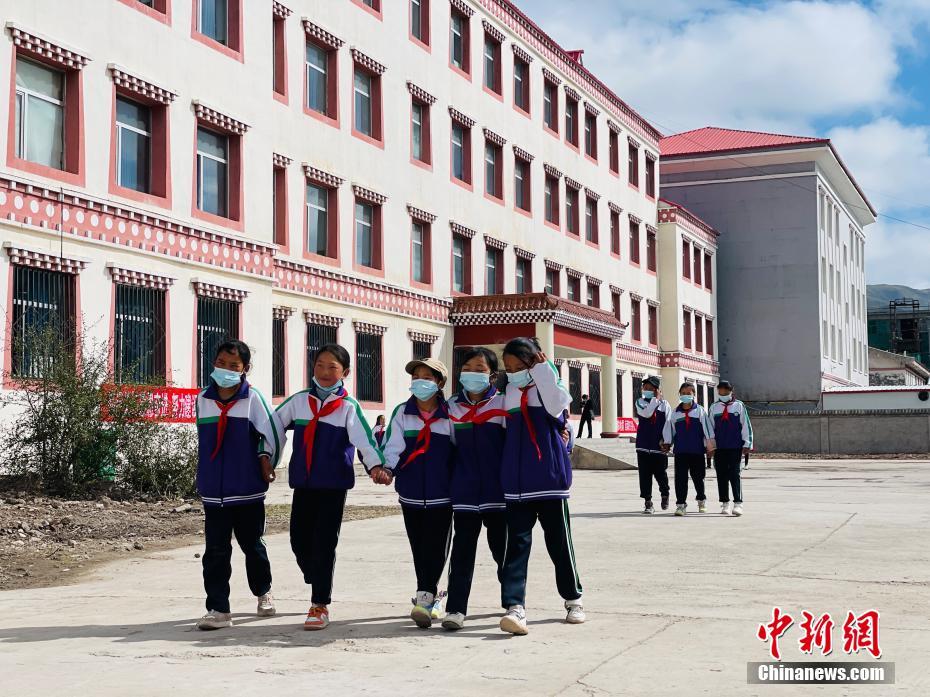 9月1日,青海省果洛藏族自治州瑪多縣地震災后過渡安置一校區(qū)的同學們迎來了新學期。圖為學生們下課后走出教學樓。為確保青?,敹嗳h中小學(幼兒園)學生秋季正常開學,該縣對災區(qū)2933名學生、322名教職工分批次過渡安置到青海省果洛全州各校以及青海省三江源民族中學就學。 中新社記者 孫睿 攝