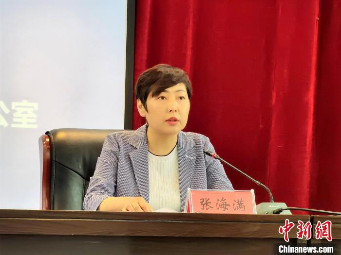 圖為青海省人民政府國有資產(chǎn)監(jiān)督管理委員會副主任張海滿介紹人才支持政策等情況。 祁增蓓 攝