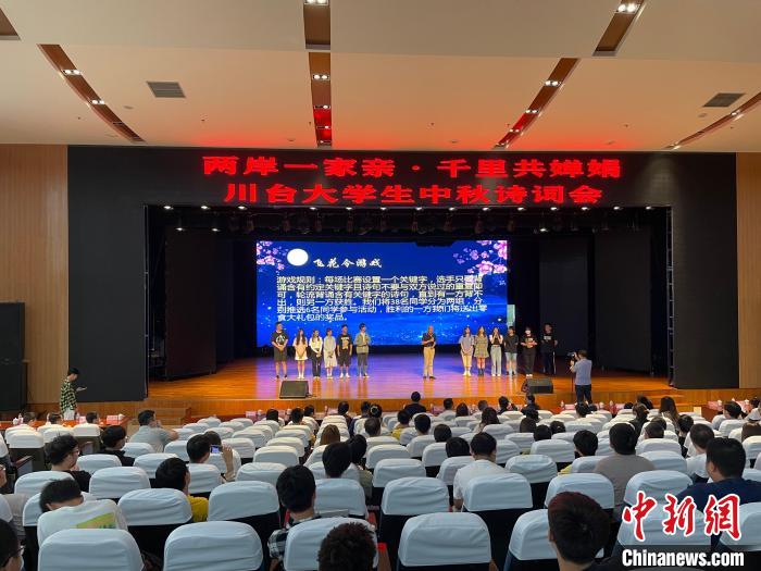 在“兩岸一家親 千里共嬋娟”川臺(tái)大學(xué)生中秋詩詞會(huì)上,臺(tái)灣學(xué)生與四川工商學(xué)院學(xué)生代表一對一結(jié)對,進(jìn)行了做月餅、猜字謎和飛花令等交流活動(dòng)。在飛花令環(huán)節(jié),臺(tái)灣學(xué)生代表和四川工商學(xué)院代表以“月”為關(guān)鍵詞開始吟詩作對,一句句與“月”相關(guān)的詩詞營造了濃濃的節(jié)日氛圍。