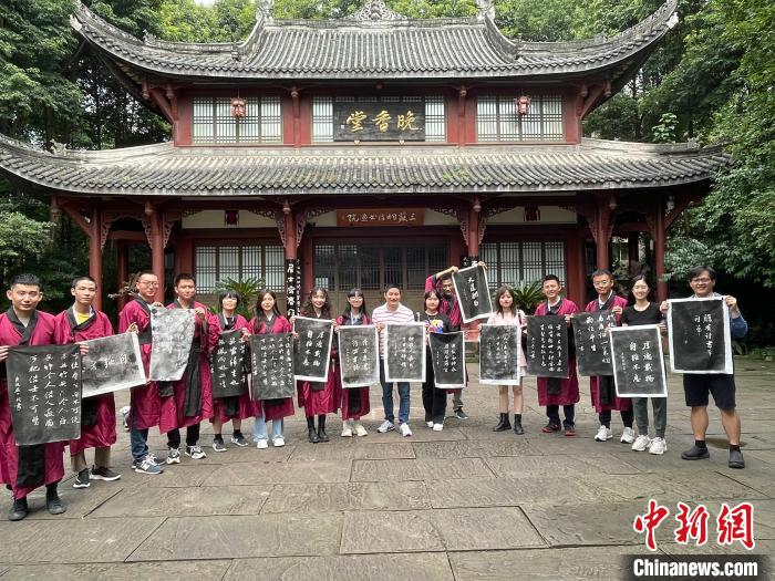 上香、祭文、行祭拜禮……在三蘇祠,臺(tái)灣大學(xué)生穿上漢服開展了祭拜活動(dòng),深入了解了中國傳統(tǒng)文化和禮儀。同時(shí),在趣味拓片活動(dòng)中,不少學(xué)生做了“但愿人長久,千里共嬋娟”字樣的拓片,表達(dá)了對中秋佳節(jié)的美好祝福。