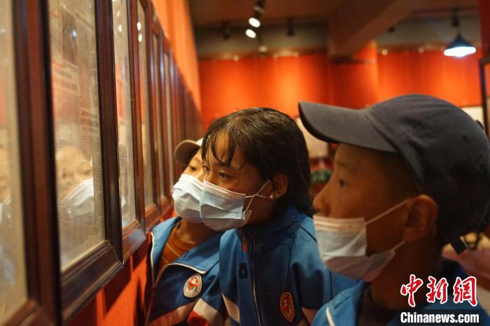 圖為學生參觀玉樹州紅色文化博物館。 胡貴龍 攝
