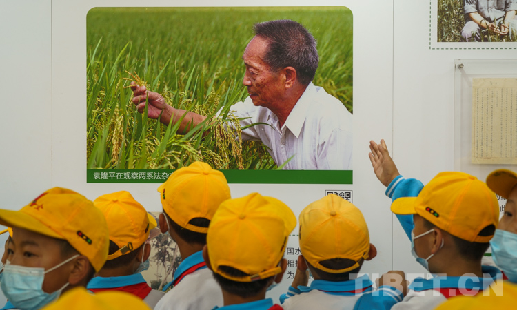 一張張照片中,一位正在觀察水稻的老人學生們幾乎都認識。“我知道袁隆平爺爺,是他讓人們不再餓肚子?!薄半m然現在糧食產量增加了,但我們還是要記住不能浪費糧食?!?學生們你一言我一語爭相發(fā)言。