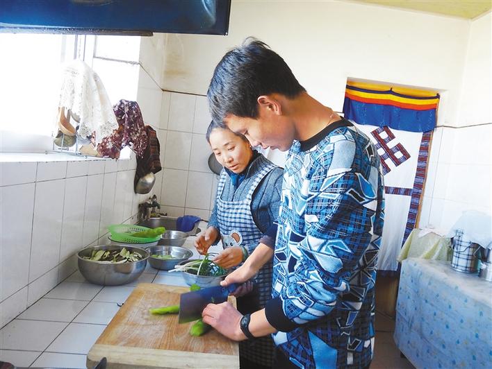 “媽媽,你坐一會兒,我來晾衣服?!眲偪忌瞎枮I職業(yè)技術學院醫(yī)學護理專業(yè)的大一新生吳堅,一把搶過德慶卓嘎手里的床單晾在了院中,在遼陽職業(yè)技術學院就讀的大二學生旺青格列也默默地整理著弟弟們的房間。