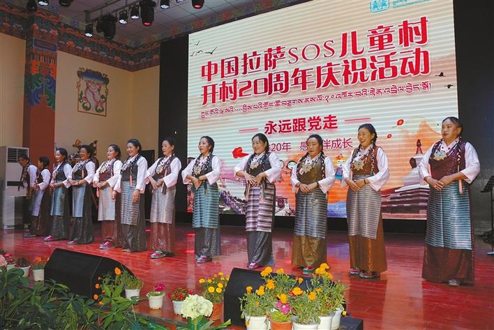 在中國拉薩SOS兒童村開村20周年慶?;顒由希皨寢尅眰儽硌莨?jié)目。