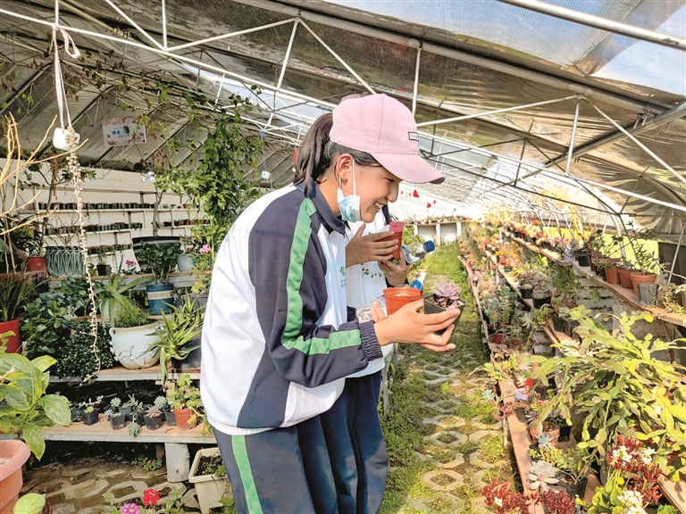 圖為在青少年實(shí)踐基地,學(xué)生正在欣賞自己親手種植的多肉植物。 拉薩融媒記者 余洋洋攝