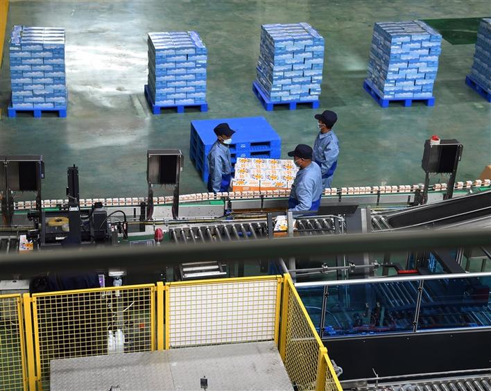 西藏奶產品企業(yè)員工在包裝學生飲用奶產品