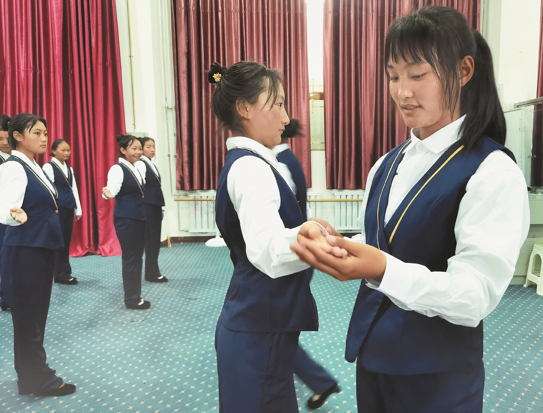 圖為拉薩二職正在對學生進行服務業(yè)從業(yè)人員培訓。拉薩融媒記者 凃 瓊攝