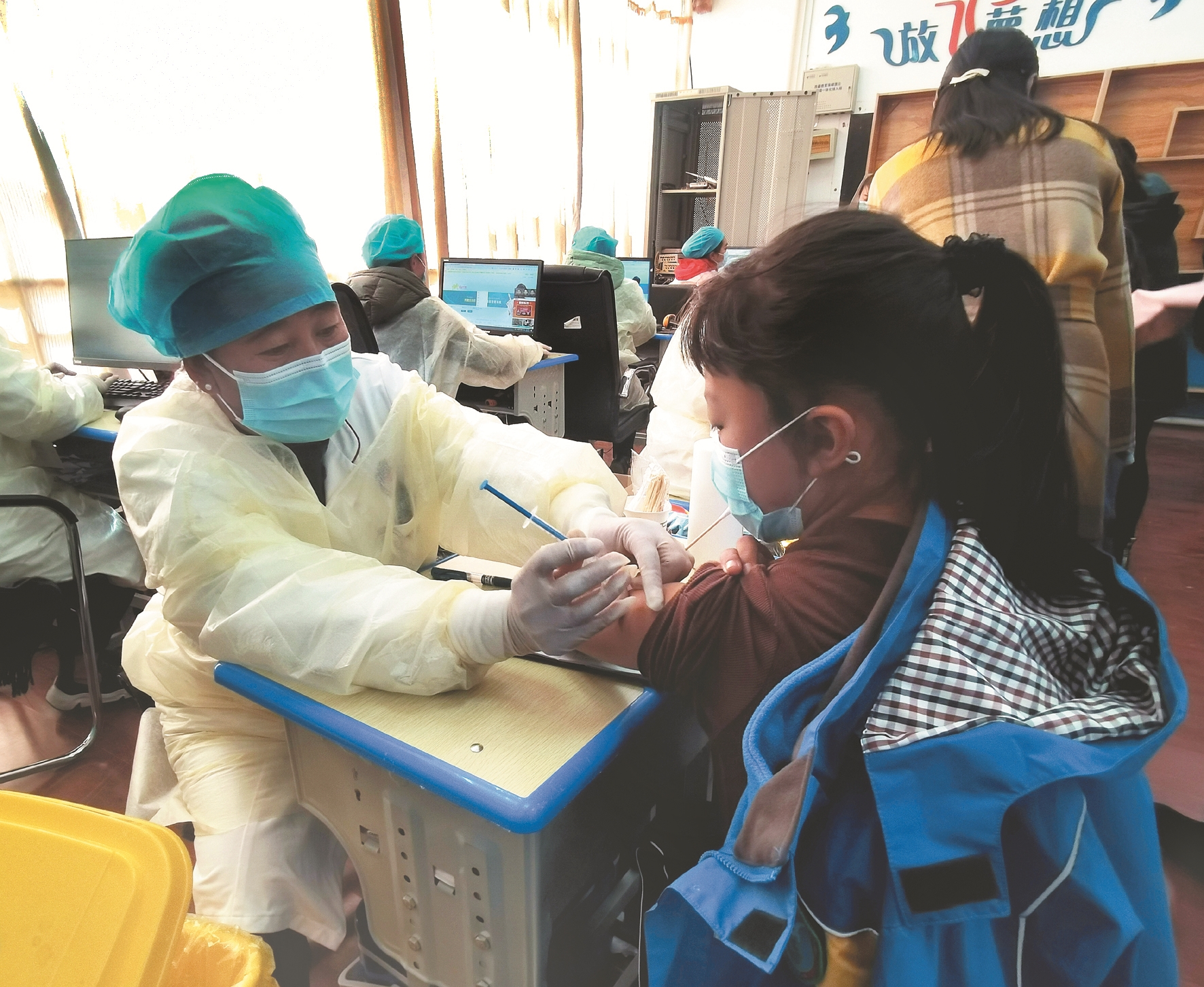 圖為林周縣蘇州小學(xué)3至11歲兒童正在接種新冠疫苗。拉薩融媒記者 凃 瓊攝