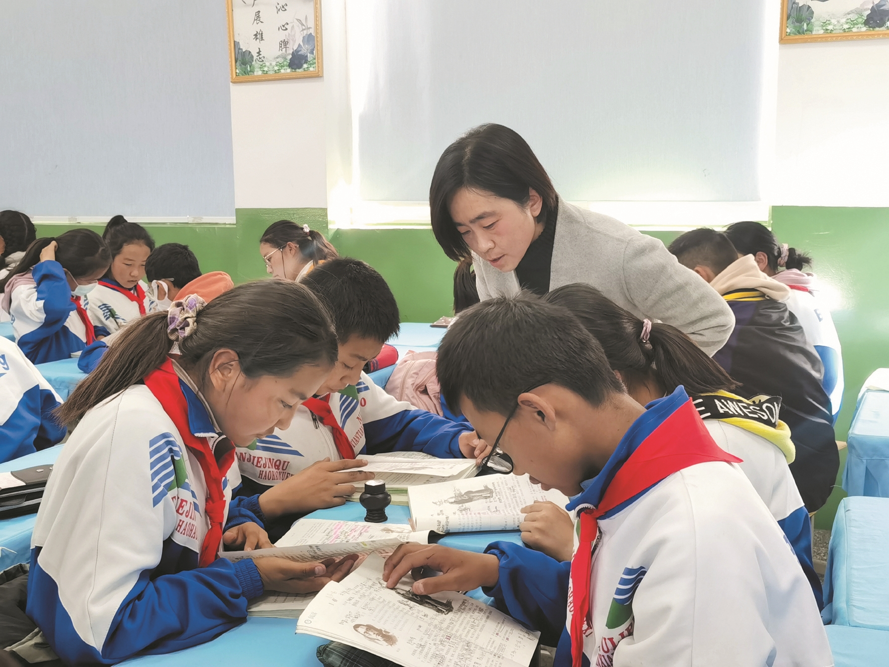 圖為王燕華正在為學生講解課本內容。拉薩融媒記者 范江英攝