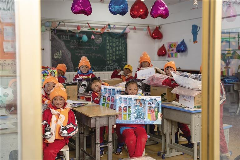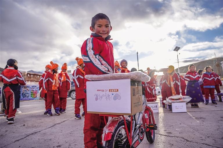 足球、籃球、奧特曼玩具、芭比娃娃、遙控飛機(jī)、自行車……孩子們欣喜地接過心心念念的禮物,迫不及待地玩耍起來(lái),紅彤彤的臉上流露出純真的笑容。