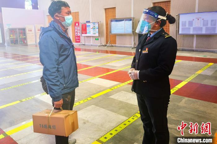 圖為羅布在林芝火車(chē)站引導(dǎo)乘客?!?guó)鐵青藏集團(tuán)有限公司 供圖