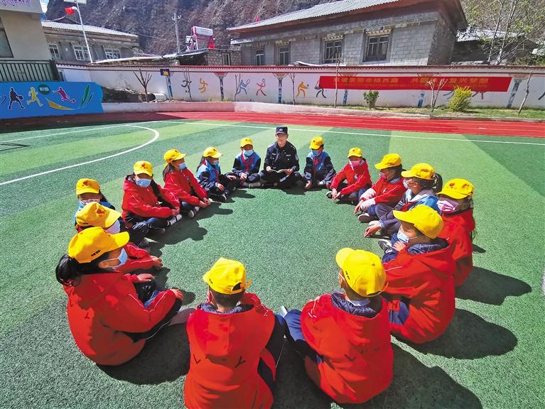 圖為林芝邊境管理支隊金東邊境派出所民警向小學(xué)生宣講國家安全知識。徐華升 攝