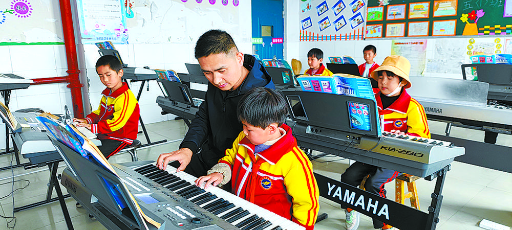“我會(huì)教他們認(rèn)樂譜、怎么卡節(jié)奏、唱什么聲部,經(jīng)過長(zhǎng)期堅(jiān)持學(xué)習(xí),孩子們進(jìn)步很快?!敝艿猛呏笇?dǎo)學(xué)生彈奏電子琴的指法,邊笑著和我們聊到,自從2017年,學(xué)校配備了專門的音樂教室,每堂課他都會(huì)堅(jiān)持使用樂器,以此來培養(yǎng)孩子們的音樂素養(yǎng),效果非常不錯(cuò)。