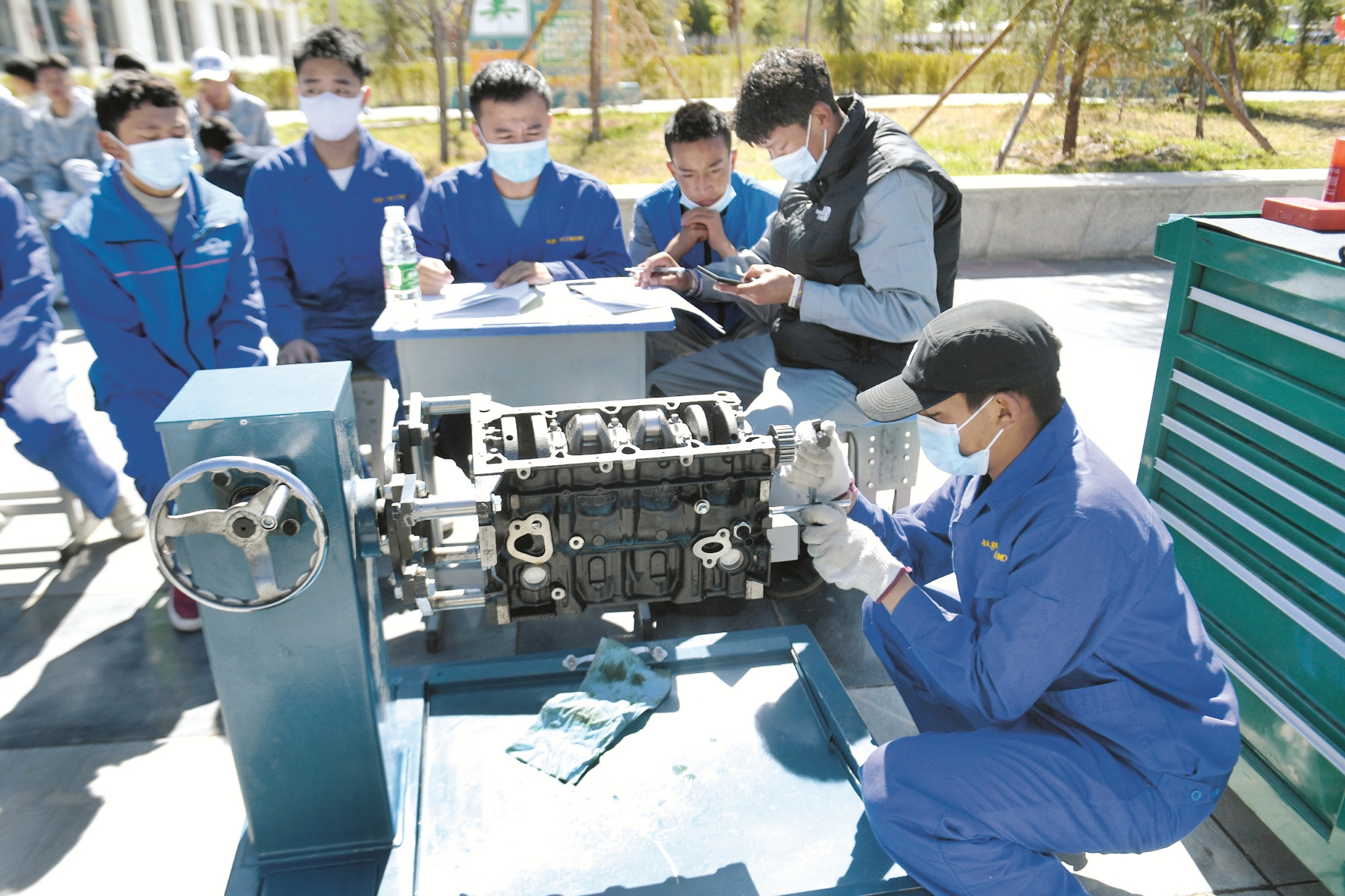 圖為拉薩市一職學(xué)生正在展示專業(yè)技能。 拉薩融媒記者 巴桑次仁攝
