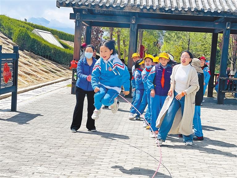 圖為拉薩市第一小學(xué)學(xué)生們在老師的帶領(lǐng)下開展戶外活動。