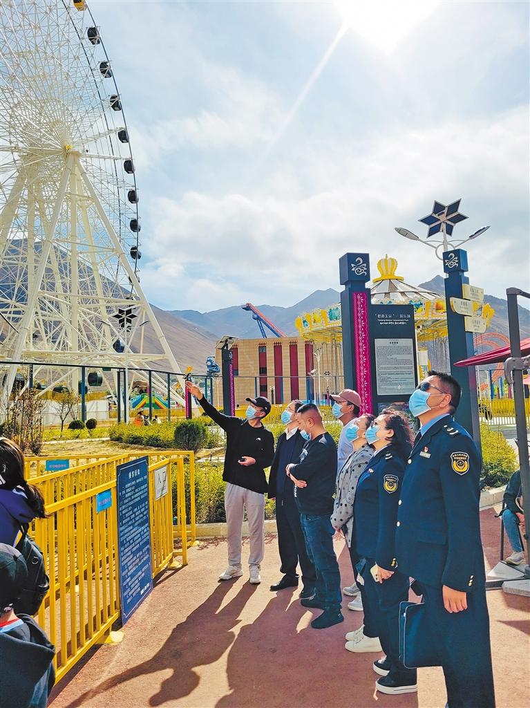 “近年來,公司為確保游樂設(shè)施安全,每周有周檢,每月有月檢,每年有年檢,并邀請自治區(qū)特種設(shè)備檢驗所以及中國特種設(shè)備檢測研究院進(jìn)行監(jiān)督檢查。拉薩市市場監(jiān)督管理局和堆龍德慶區(qū)市場監(jiān)督管理局還會不定期對園區(qū)進(jìn)行檢查,抽查日常各項檢查指標(biāo)是否落實到位?!蔽鞑乩寿愊笮勖蓝湮穆眯℃?zhèn)游樂園負(fù)責(zé)人王代庚說。
