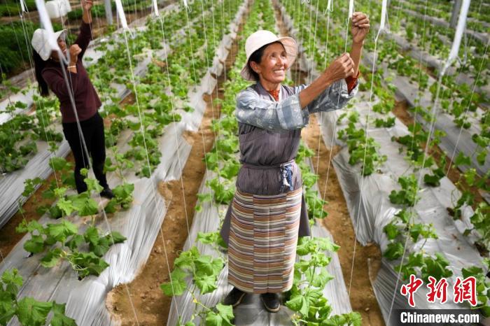 工人在西藏自治區(qū)山南市扎囊縣智慧農(nóng)業(yè)項目的旗云瓜地中勞作。楊華峰 攝