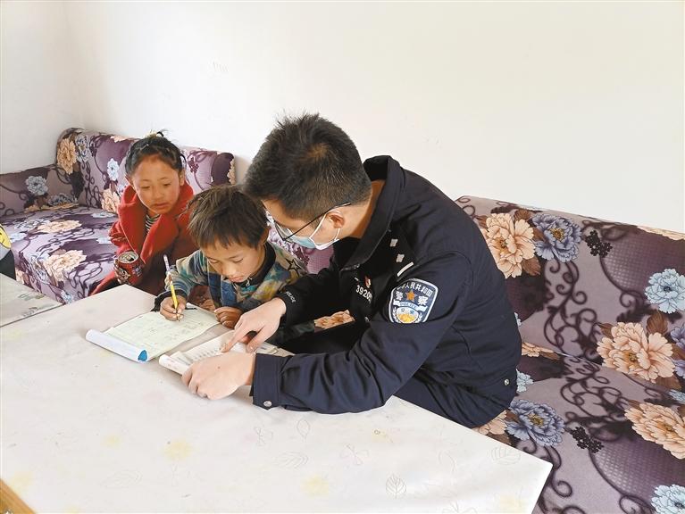 “老師,小扎西最近在學(xué)校表現(xiàn)的怎么樣?”扎西江措在上察隅鎮(zhèn)小學(xué)上一年級,這個年齡段的孩子,最是調(diào)皮的時候,每當(dāng)派出所民警下鄉(xiāng)走訪經(jīng)過學(xué)校時,都會找到小扎西的班主任詢問最近狀況。孩子們?nèi)粘W(xué)習(xí)、生活中的一舉一動,不僅牽動著派出所民警的心,也牽動著遠(yuǎn)在千里之外駐村民警化旦的心?!翱络鳎⒆觽冏罱€好嗎?我看物流信息顯示圖書和零食已經(jīng)到了,你們下鄉(xiāng)的時候就把東西帶過去……”2020年,化旦分配到上察隅邊境派出所,喜歡孩子的他,迅速和扎西、拉姆打成一片,平時只要有空便帶著學(xué)習(xí)、生活用品去看他們,為了迎合孩子們的興趣愛好,化旦也會從網(wǎng)上學(xué)習(xí)兒童歌曲、舞蹈,與孩子們一起唱歌跳舞。