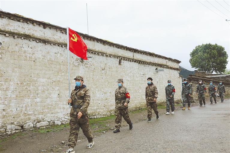 圖為扎雪村民兵隊(duì)伍在村莊內(nèi)巡邏。通訊員 洛克 攝