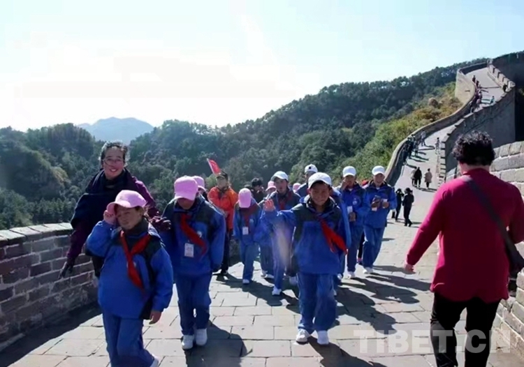 圖為那曲市特殊教育學(xué)校師生在長(zhǎng)城參觀、學(xué)習(xí)
