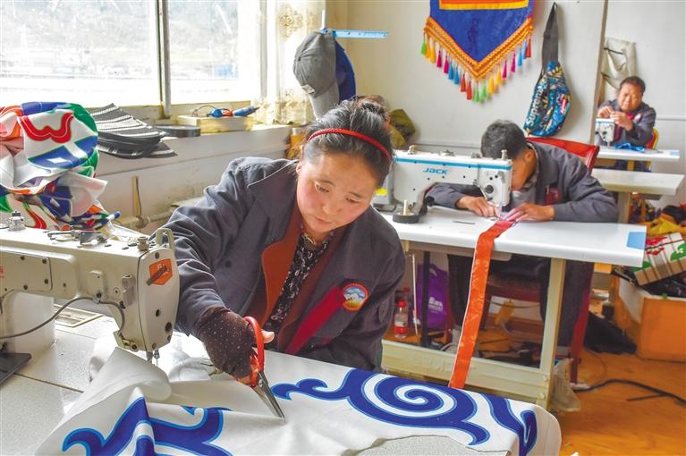 圖為“雙創(chuàng)”孵化基地的格拉夏手工業(yè)有限責任公司員工在制作帳篷。記者 劉楓 攝