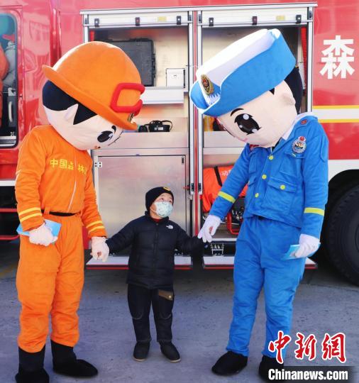 森林消防隊員組織小朋友體驗消防車?!×种ナ猩窒拦﹫D