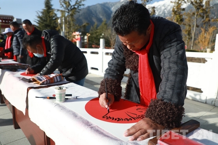 在林芝市藏醫(yī)院工作的巴桑次仁,是林芝市文聯(lián)書(shū)法家協(xié)會(huì)會(huì)員。當(dāng)天一大早,林芝市文聯(lián)書(shū)法家協(xié)會(huì)的各位書(shū)法家揮毫潑墨,不停地為群眾寫(xiě)下新年祈福和愿望。現(xiàn)場(chǎng)群眾簇?fù)碛^摩,與書(shū)法家們認(rèn)真交流,臉上不時(shí)揚(yáng)起幸福的笑容。據(jù)悉,活動(dòng)當(dāng)天,書(shū)法家協(xié)會(huì)共送出100余副春聯(lián)、150余幅字畫(huà)。