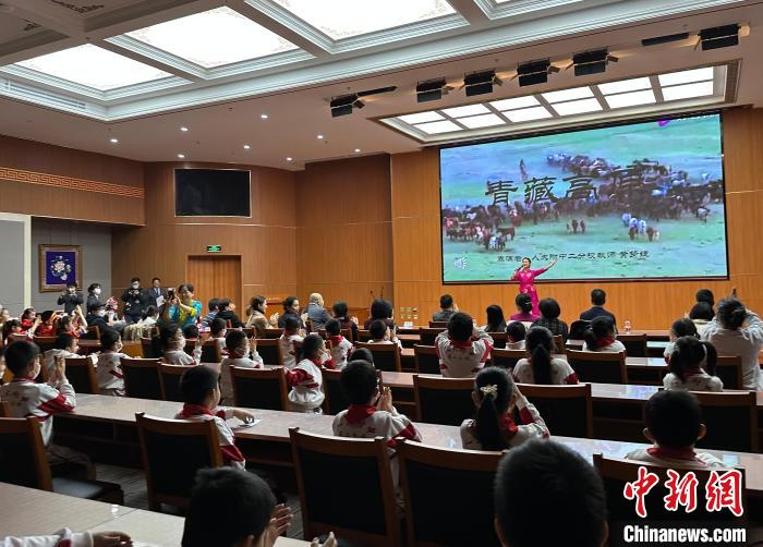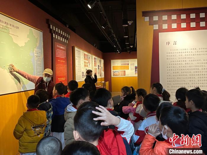 圖為活動當(dāng)天西藏文化博物館的志愿者們帶領(lǐng)小朋友參觀館內(nèi)展覽?!±铌涎?攝