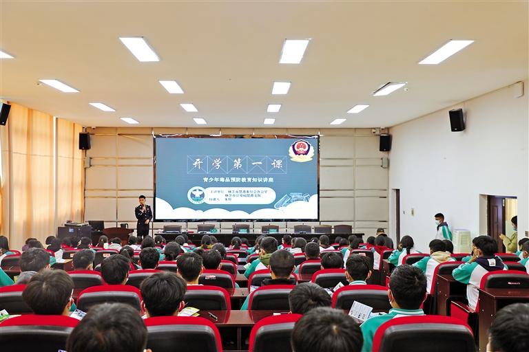 一堂“交通安全”課、一堂“禁毒知識(shí)”課、一堂“法治教育”課……活動(dòng)中,民警們通過播放視頻、以案說法、現(xiàn)場演示等多種教學(xué)形式,用通俗易懂的語言,直觀生動(dòng)的講解,熱烈輕松的互動(dòng),為同學(xué)們送上法律知識(shí)、交通安全、禁毒、反詐等“知識(shí)大禮包”。