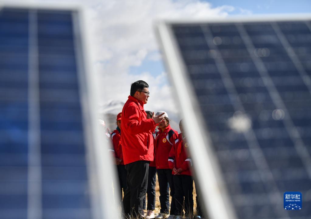 5月15日,扎西宗鄉(xiāng)完全小學(xué)的學(xué)生們在珠峰站參觀學(xué)習(xí)。新華社記者 晉美多吉 攝