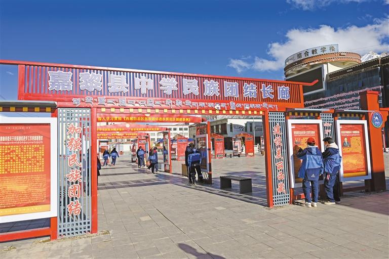 那曲市嘉黎縣中學(xué)民族團(tuán)結(jié)長廊。