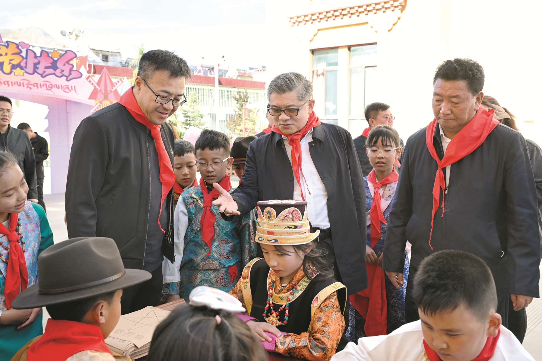6月1日上午,市委副書記、市長王強來到拉薩市第一小學(xué)江蘇路分校及拉薩市江蘇實驗幼兒園,看望慰問我市廣大少年兒童并參加慶“六一”主題隊日活動。這是王強在拉薩市第一小學(xué)江蘇路分校仔細觀看小朋友們的才藝展示。 拉薩融媒記者 巴桑次仁攝