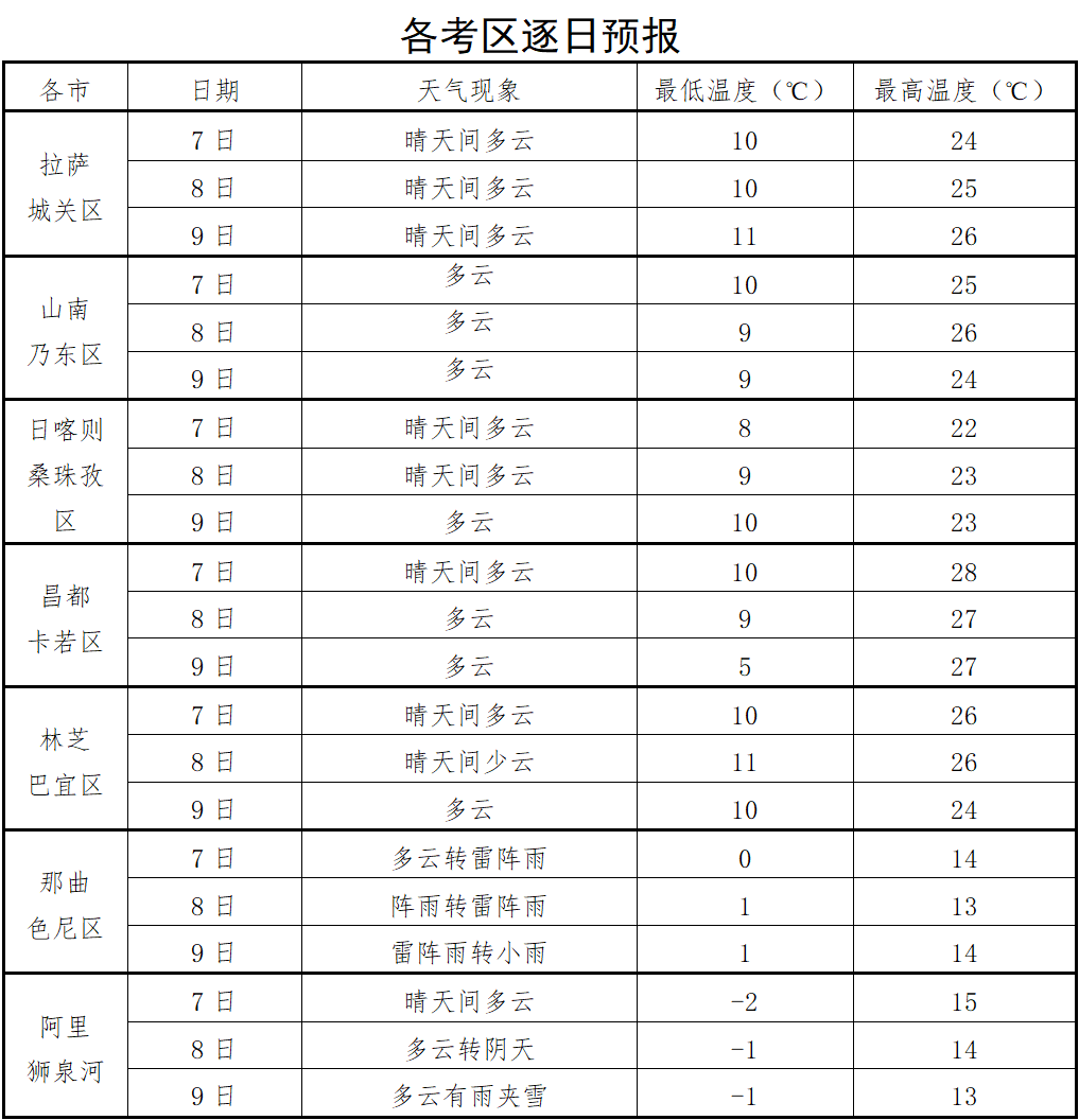 2.那曲和阿里部分時(shí)段有陣性降水,雨天路滑,考生適當(dāng)提早出行,備好雨具。