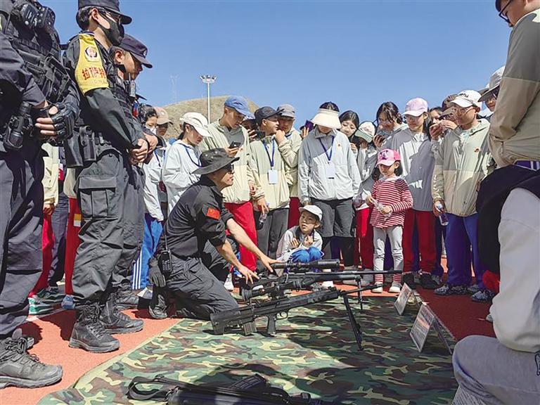 記者了解到,在26日禁毒日當天,全體學(xué)生還參加了拉薩市公安局柳梧特警支隊的“警營開放日”活動,近距離體驗了特警的工作日常和各類特警裝備,并與特警們互動。特警向?qū)W生們講解了如何搜毒、識毒等安全知識,讓學(xué)生們對“綠色無毒、健康人生”有了進一步了解。也讓大家樹立了從警夢想,豐富和拓展了營員們的文化生活,讓學(xué)生們過了一次難忘的警營之旅。