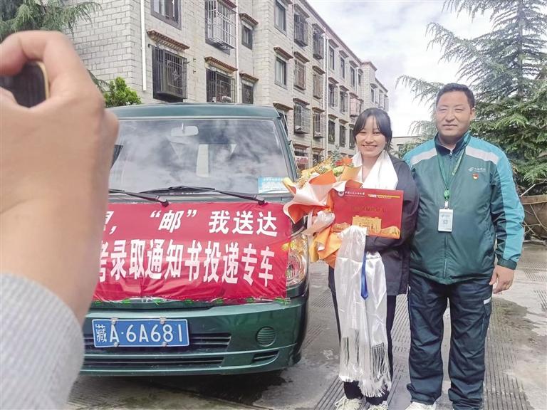 考生拿到錄取通知書。 圖由西藏郵政提供